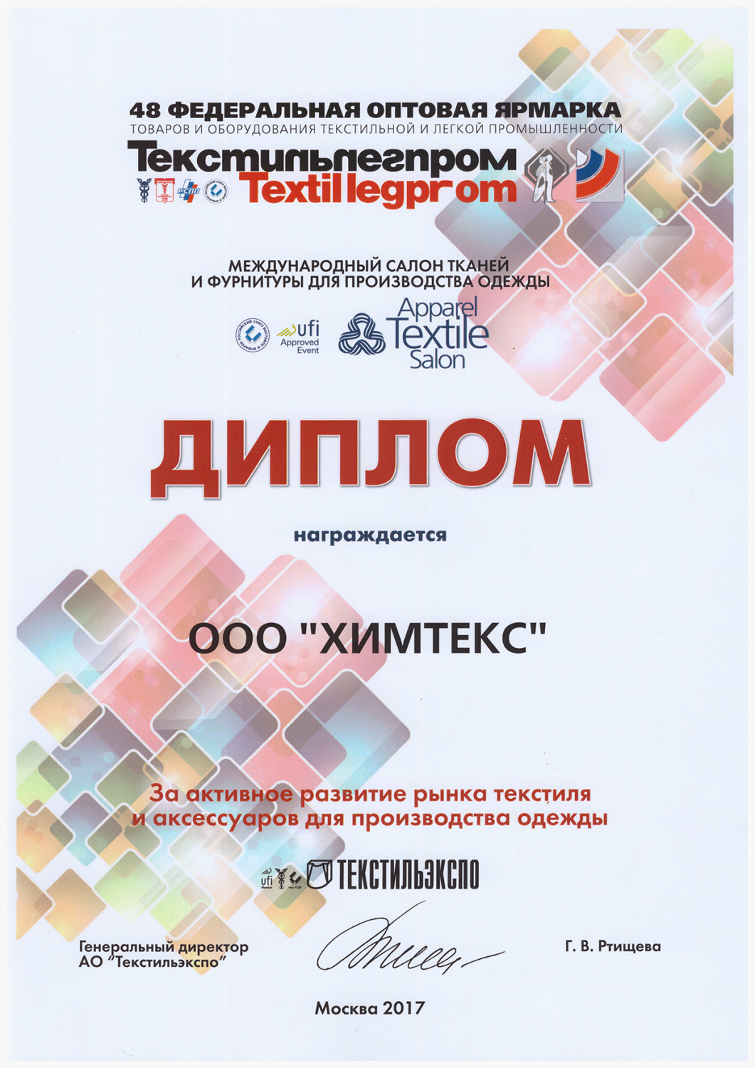 За активное развитие рынка технического текстиля, нетканых материалов, защитной одежды и сырьевых ресурсов.